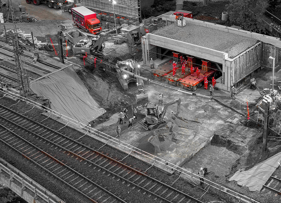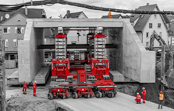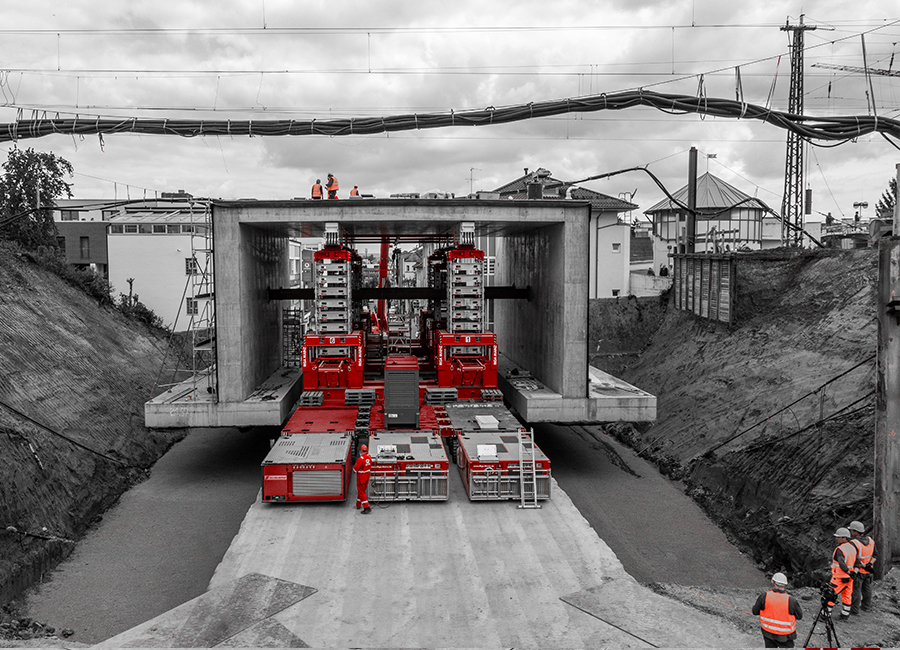 Erstmals kombinierte Riga Mainz die ferngesteuerten Schwerlasttransporter Scheuerle SPMT mit einer Kesselbrücke und Litzenhebern zum effizienen Austausch mehrerer Bahnbrücken.Diese Eigenentwicklung brachte uns den Sieg in der Kategorie „Montage des Jahres 2020“ des renommierten Awards der Bundesfachgruppe Schwertransport und Kranarbeiten.