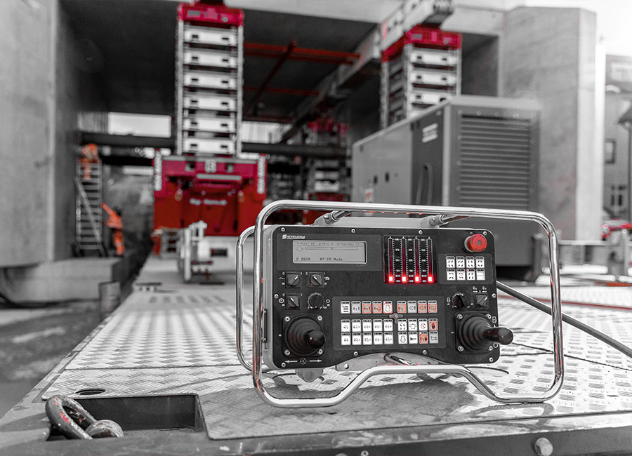 Das Power-Lift-Tower System besteht aus bis zu acht einzeln positionierbaren Türmen mit einer Gesamthubleistung von 4.000 Tonnen. Das zeitaufwendige Verlegen von an-fälligen Hydraulikleitungen ist nicht mehr notwendig, zur Verbindung genügt jeweils ein 400V/32A Starkstromkabel. Die gesamte Steuerung kann über eine drahtlose Fernbedie-nung erfolgen, auf der alle relevanten Daten stets abrufbar sind. Alternativ ist der Betrieb aber auch kabelgebunden möglich.