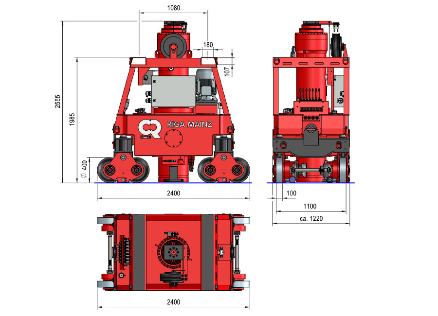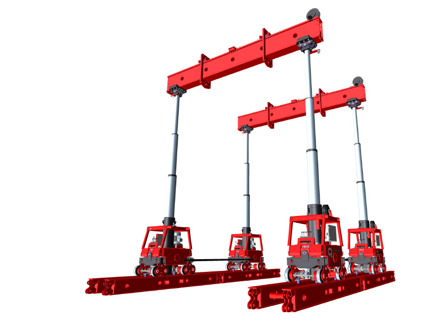 Für das Bewegen schwerer Lasten bis 1.000 Tonnen steht das neue Hubgerüst GHS 3-1000 bereit. Das System besteht aus vier dreistufig ausfahrbaren Zylindertürmen und wird auf Doppelfahrweg-Schienen mit einer Breite von 1.200 mm montiert. Besonderheit des modularen Systems ist eine zusätzlich einbaubare Erhöhung im Untergestell (1.250 mm), die für eine Gesamthöhe bis 10.100 mm (ohne Portalträger) sorgt. Für eine gleichmäßige Parallelfahrt sind die Untergestelle des Systems mit einer Spurführung versehen und werden paarweise mechanisch verbunden. Der Parallelhub wird bei dieser neuen Generation elektronisch überwacht und macht präzises Arbeiten möglich. Die Steuerung erfolgt über eine kabellose Fernbedienung.